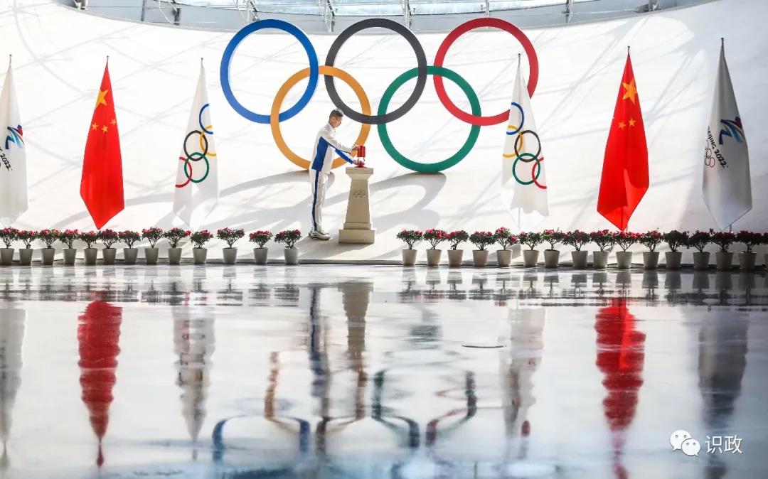 活动现场,视频回顾了在希腊举行的北京冬奥会火种采集和交接仪式。伴随着全场期盼的目光,工作人员护送北京冬奥会火种登上舞台,点燃火炬。蔡奇接过燃烧的火炬,高高举起,向现场观众示意,并点燃中国传统礼器“尊”造型的仪式火种台。这一刻,承载着奥林匹克精神的火种点燃了人们对北京冬奥会的期盼。