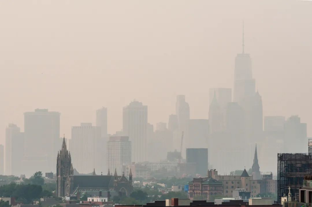 当地时间2021年7月21日,美国纽约市被野火的浓烟笼罩。图/IC photo