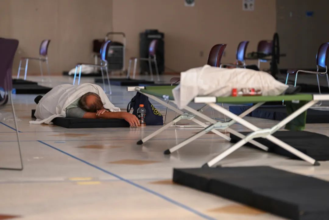 当地时间2021年8月11日,美国俄勒冈州波特兰迎来高温天气,民众在避难所中。图/IC photo