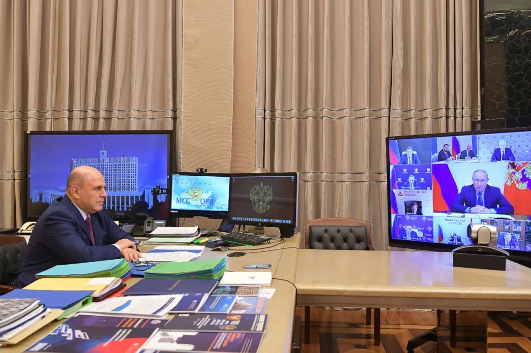 10月20日,普京主持线上政府会议,总理米舒斯京视频出席。/IC photo
