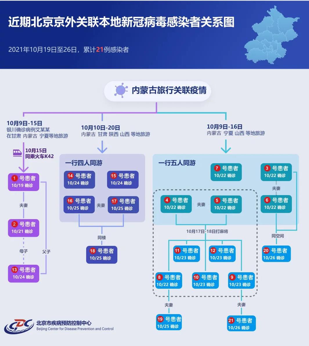 截至目前,北京累计报告京外关联本地病例21例,其中确诊病例20例,无症状感染者1例,感染者均来自管控人员。
