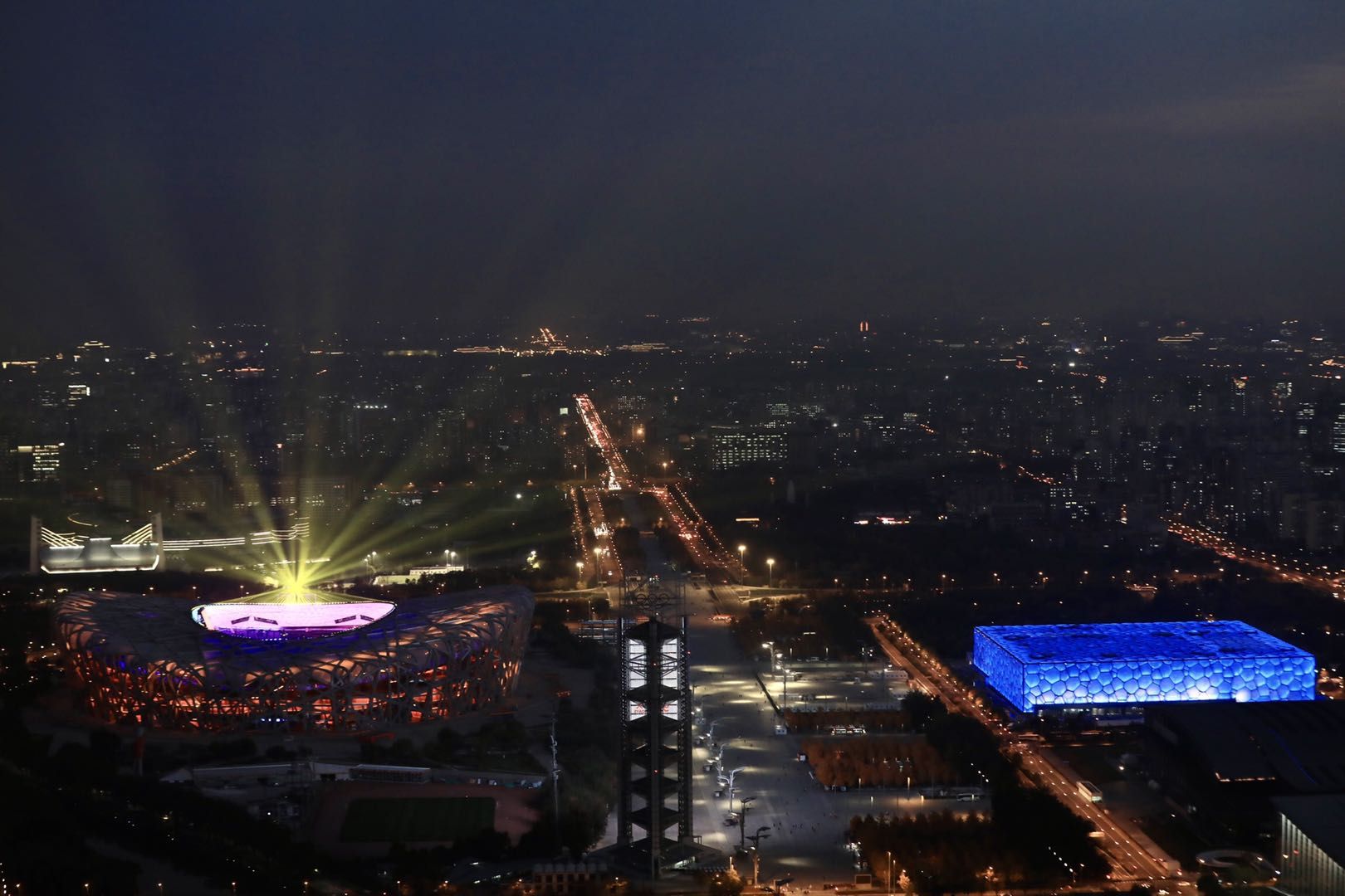 鸟巢和水立方亮灯。新京报记者 浦峰 摄