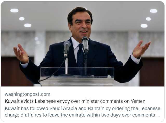 科威特因黎巴嫩新闻部长在也门问题上的言论驱逐黎巴嫩外交官员。/社交媒体截图