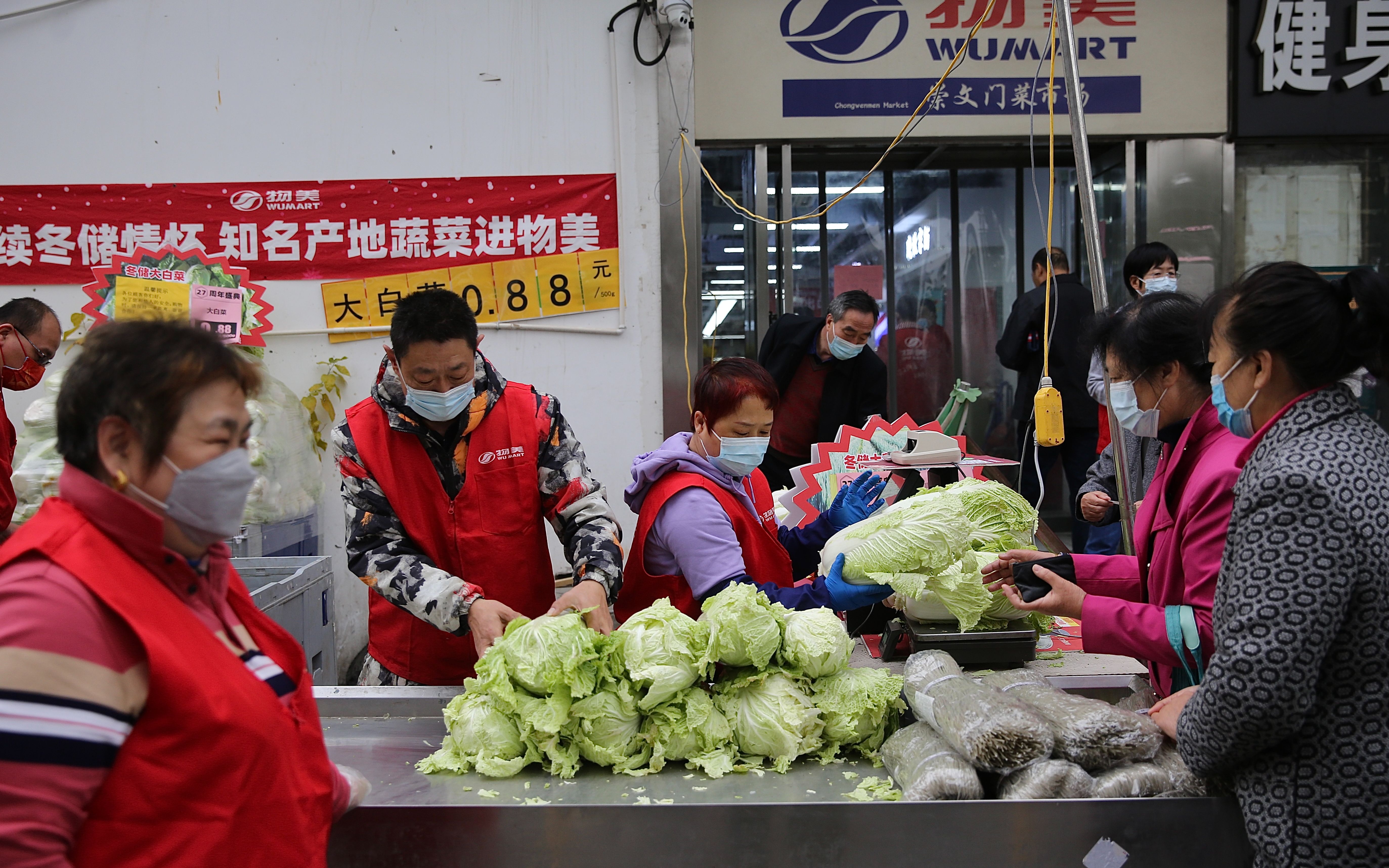 崇文门菜市场物美店每年固定时间销售冬储大白菜,今年刚开始卖时,大白菜1块多钱一斤,“卖了几天后,一直是8毛8一斤。”杨学清说,冬储大白菜是物美的惠民项目,每年都是亏着本儿卖。“现在市场上大白菜批发价还0.9元-1.3元/斤,我们从产地直采,基本上是产地收什么价就卖什么价。”据介绍,2019年冬储大白菜卖0.29元/斤,最便宜时卖到了0.19元/斤;去年冬储大白菜是0.39元/斤。