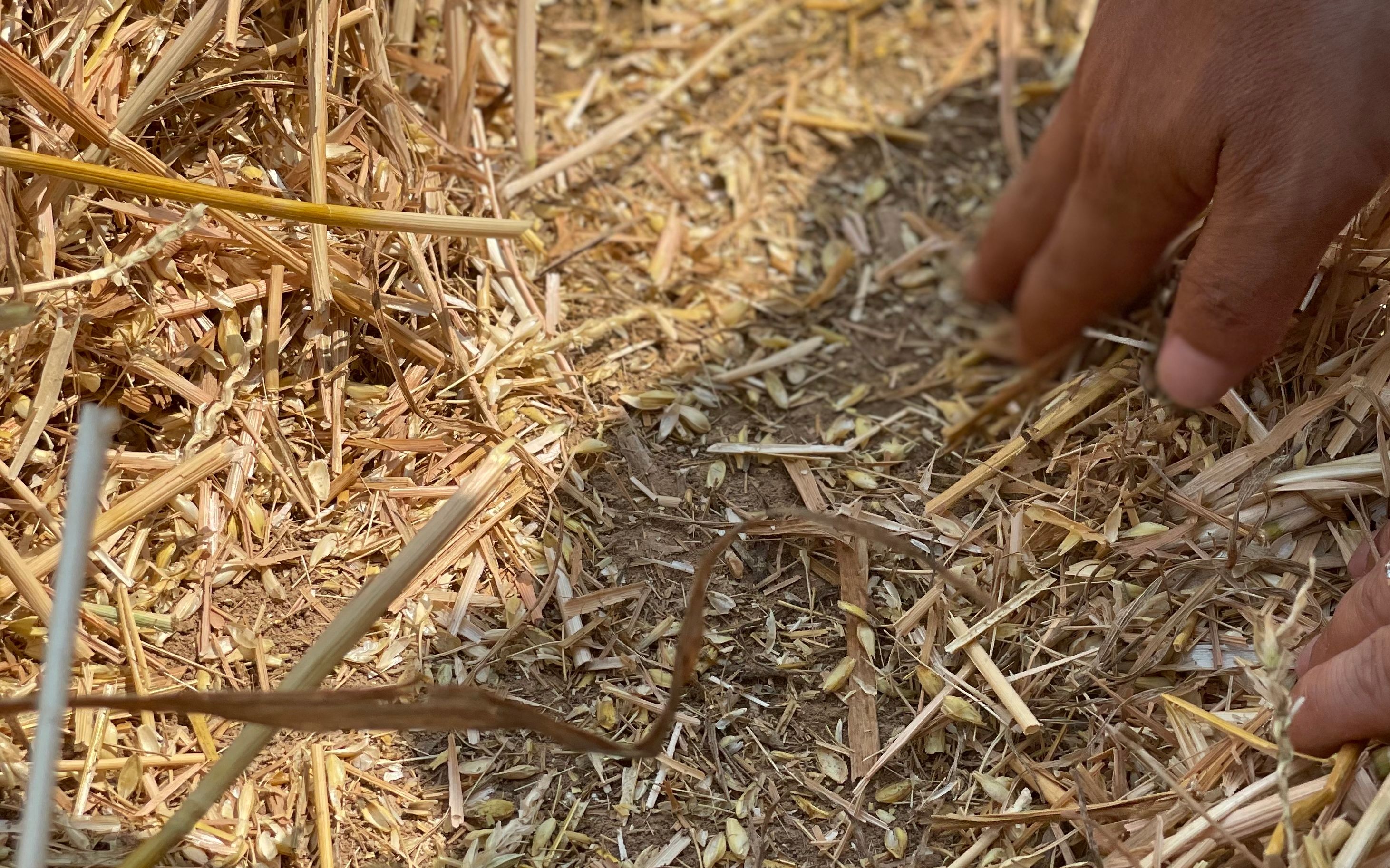 河南兰考,收割过的田间,还是有很多麦籽。新京报记者 田杰雄 摄