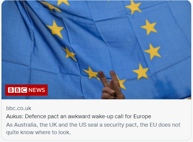 “AUKUS”给欧洲敲响了尴尬的警钟。/社交媒体截图