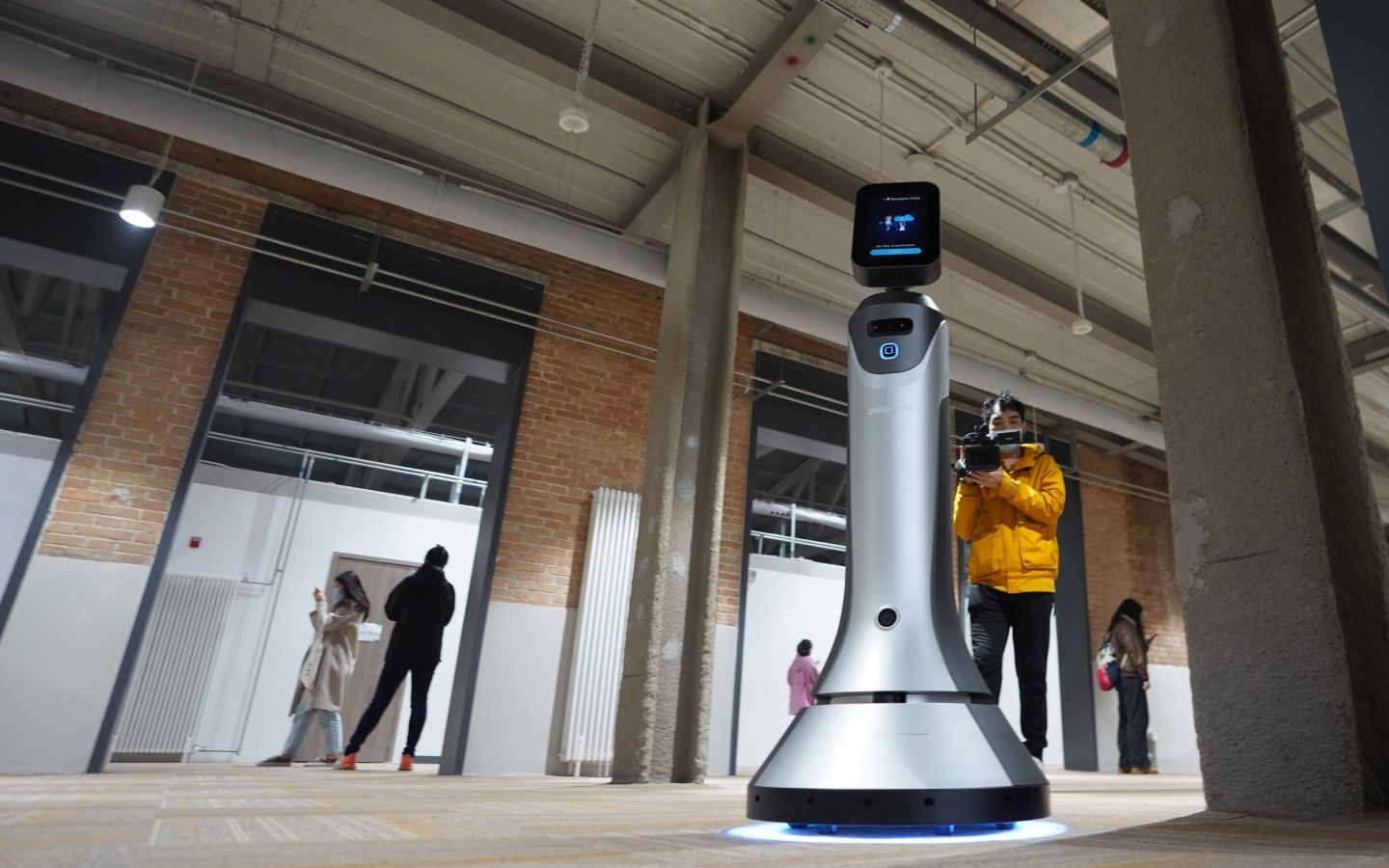 2021年11月5日,代表团接待中心的引导机器人。新京报记者 陶冉 摄