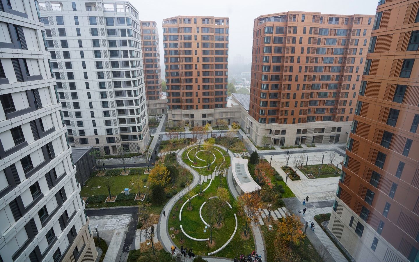 北投集团冬奥村项目部项目经理屈晨介绍,公寓楼的设计理念来自北京四合院的院落形式,20栋建筑围合成6到7个合院,其中,有2个比较大的院落,其余两三栋楼各自组成小的院落。通过围合和开放的空间变化,形成“楼楼有园、户户有景”的社区归属感。