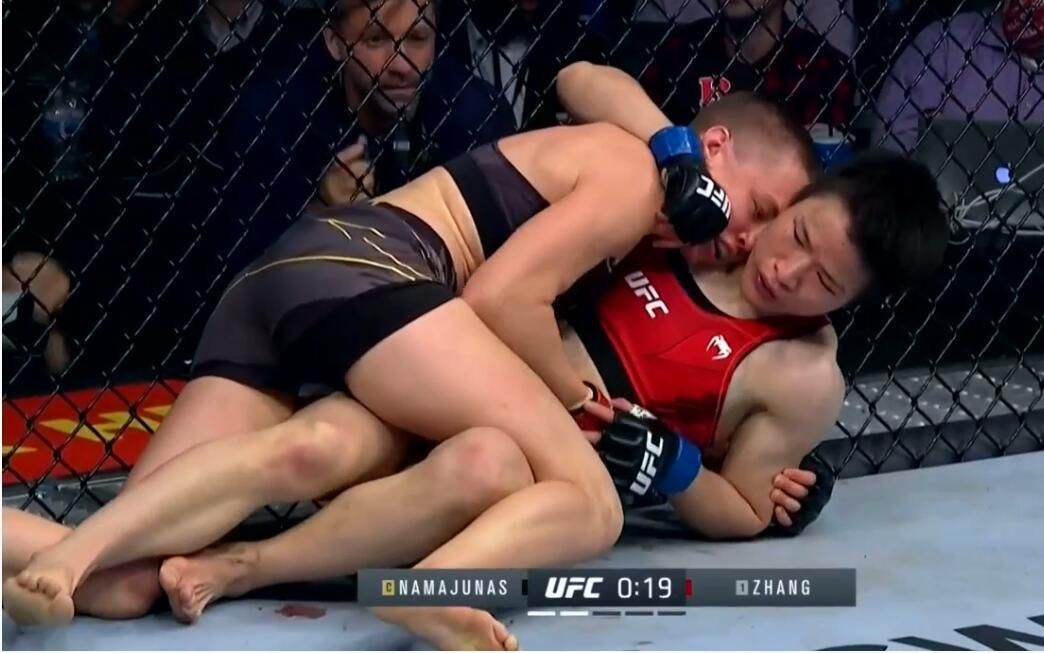 第5回合刚开始,罗斯率先发难进入抱摔,张伟丽被压制后一直未能起身,比赛也在地面压制中结束。整场比赛,罗斯在地面的控制时间超过了6分钟。