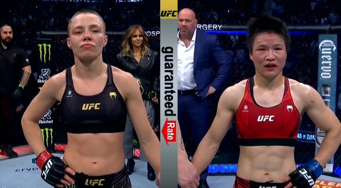 第3回合还有两分钟,罗斯击倒张伟丽。但张伟丽随即起身将罗斯压制到笼边。最后30秒,张伟丽成功抱摔拿背,连续砸击罗斯。只是比赛时间太少,张伟丽未能终结比赛。