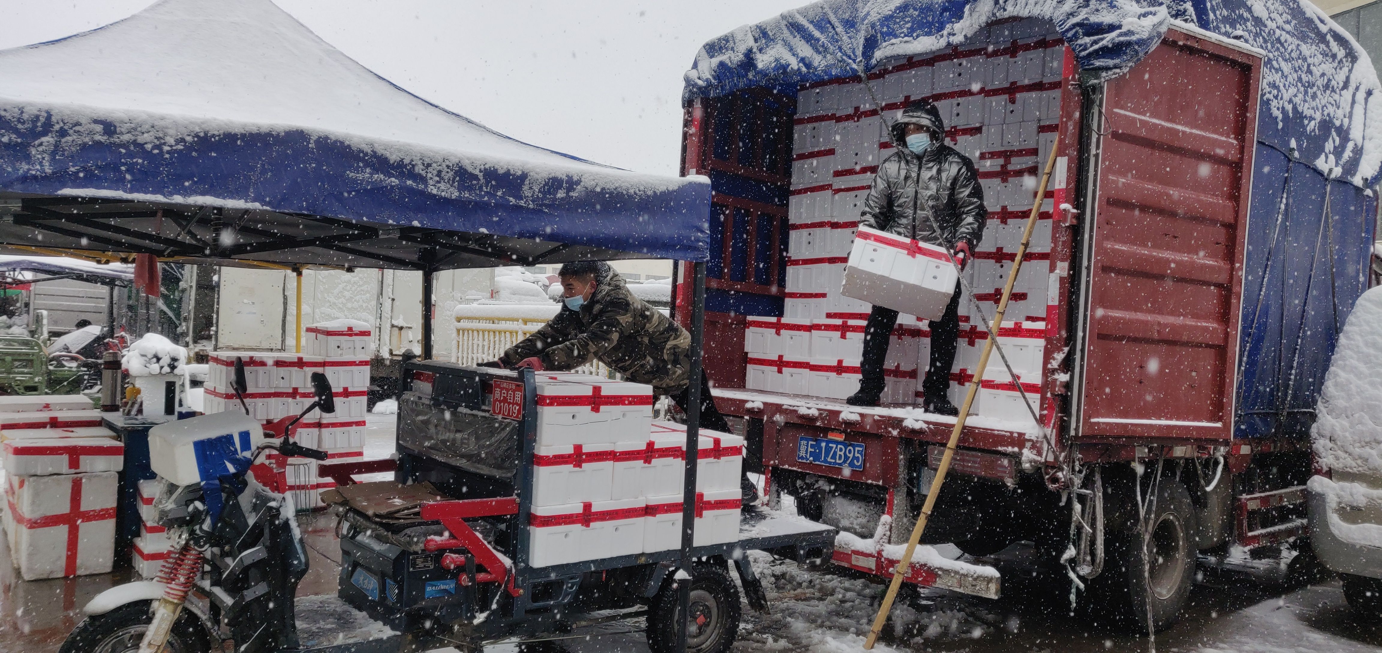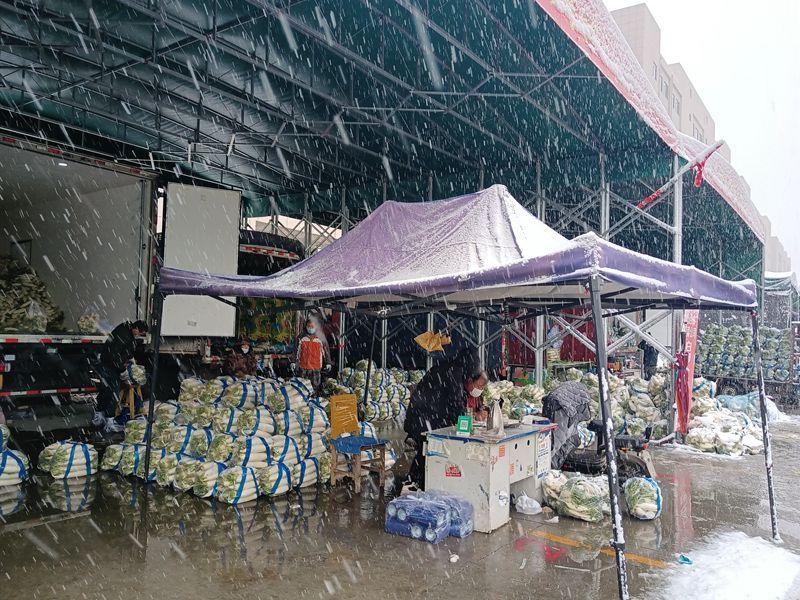 新京报讯(记者 耿子叶)11月7日,京津冀大部分地区出现降雪天气,气温已经达到零下。新京报记者从河北新发地市场了解到,为应对强雨雪天气,市场提前做足了准备工作,11月5日市场组织商户提前把货物运输进场,并进行整体调度、储存,保障货源充足。