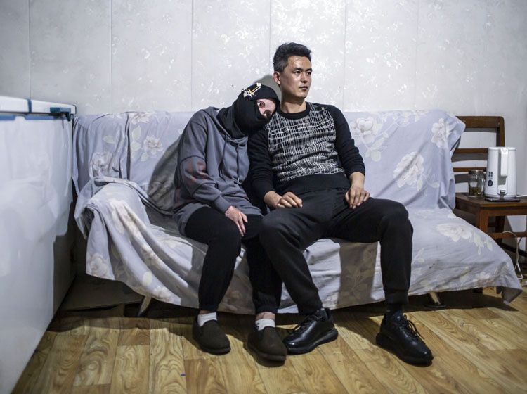 马雪光和牟小花坐在沙发上。如有外人在场,牟小花一般会裹上面纱,只露出一双眼睛,而眼睛周边暗红色的结疤处仍清晰可见。《捐千份酿皮的兰州小哥,希望妻子手术后重拾自信》