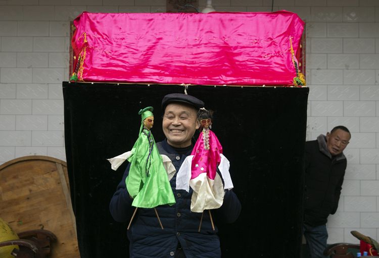 12月16日,陈远立介绍被单戏中的人物角色。被单戏其实是一种木偶戏,吹拉扯唱只一人操作,用一张被单大小的布围住桌角上面四根竹杆搭成戏台。被单戏早在明朝就留下记载,现在已成为非遗文化项目。《想把被单戏传下去的非遗传承人》