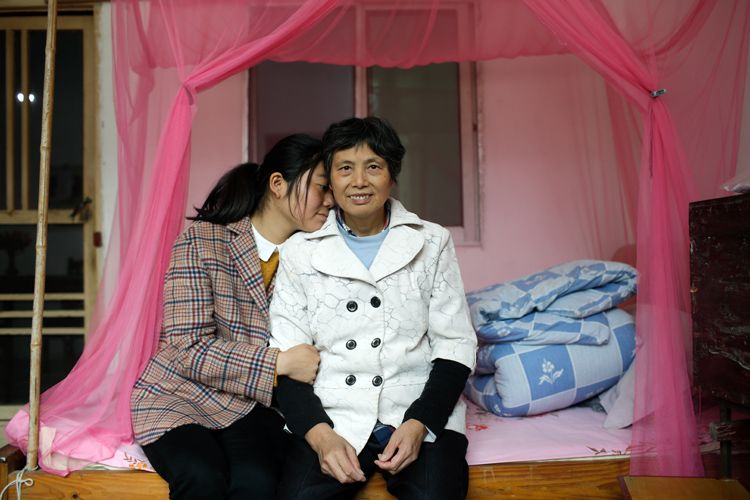 10月25日,大关镇娅娅母亲家,娅娅依偎着母亲。《换上母亲的肾,被打断的人生重新上路》