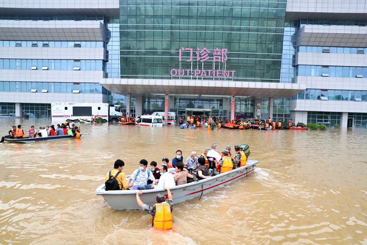华中阜外医院外,救援船和冲锋舟穿梭不停。《 “孤岛”营救》