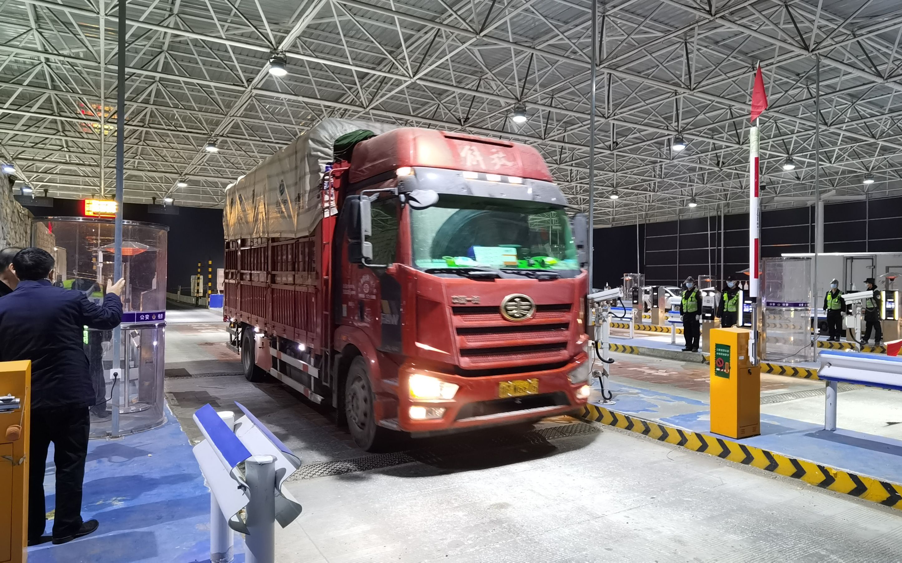 11月17日凌晨,大广高速求贤检查站,来自外阜的鲜活农产品运输车辆通过检查,驶入北京。新发地市场供图