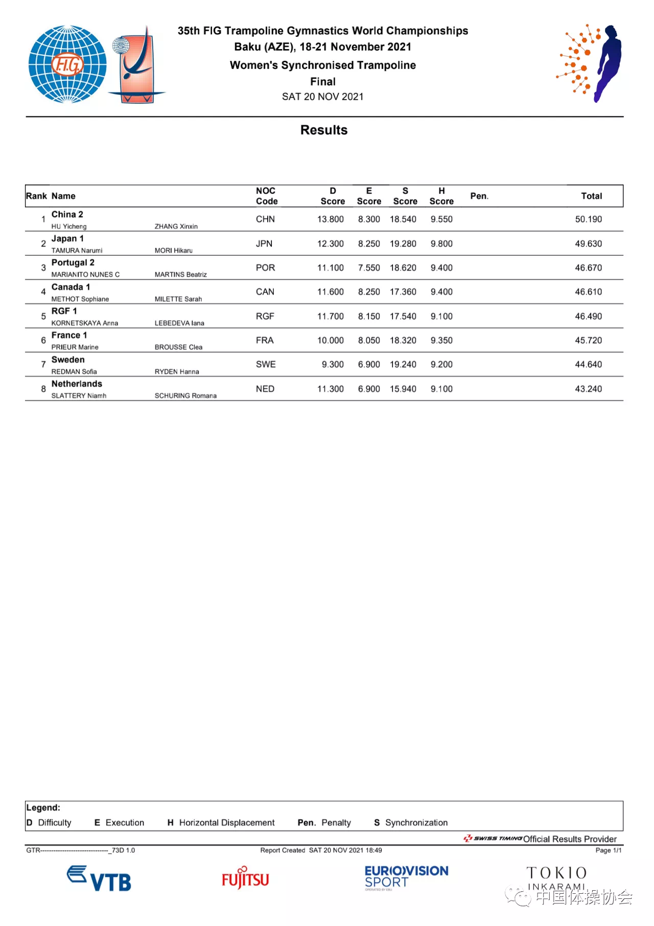中国组合强势夺冠。图/中国体操协会