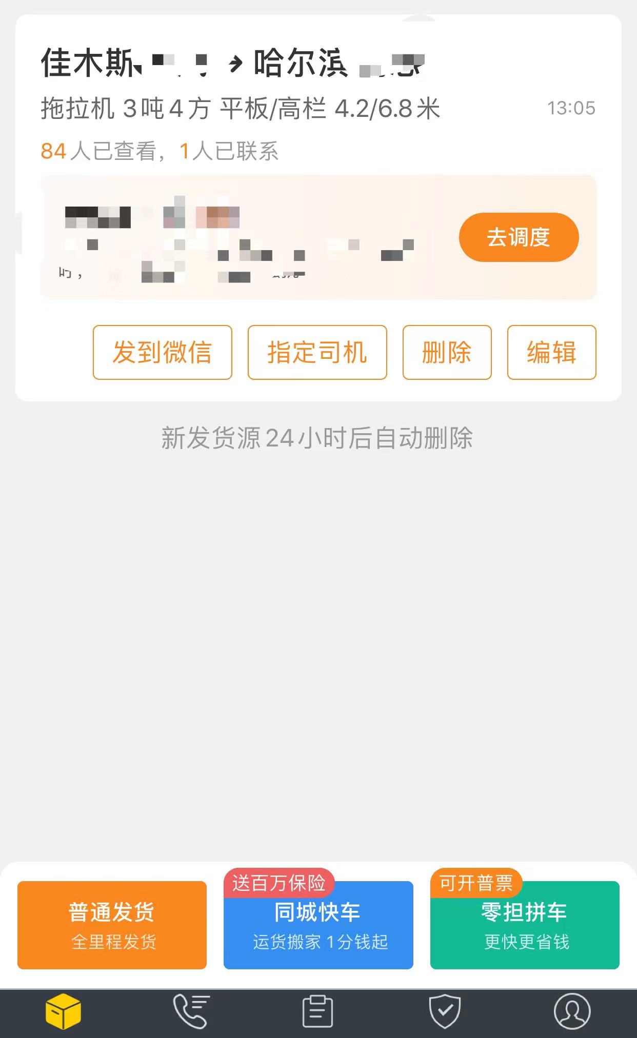 刘先生在某找货车平台上挂的运输信息。受访者供图