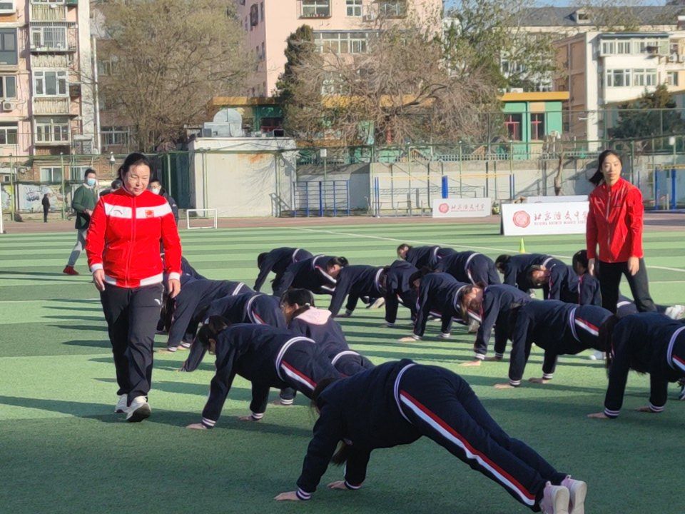 11月25日,多位北体大奥运(世界)冠军代表与汇文中学学生在汇文运动场一起上了一堂体育课。新京报记者 王景曦 摄