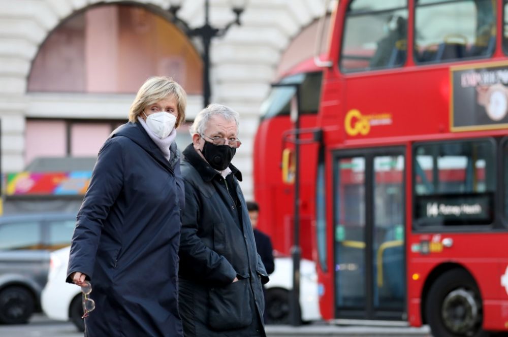 11月25日,人们在英国伦敦佩戴口罩出行。(新华社记者李颖摄)