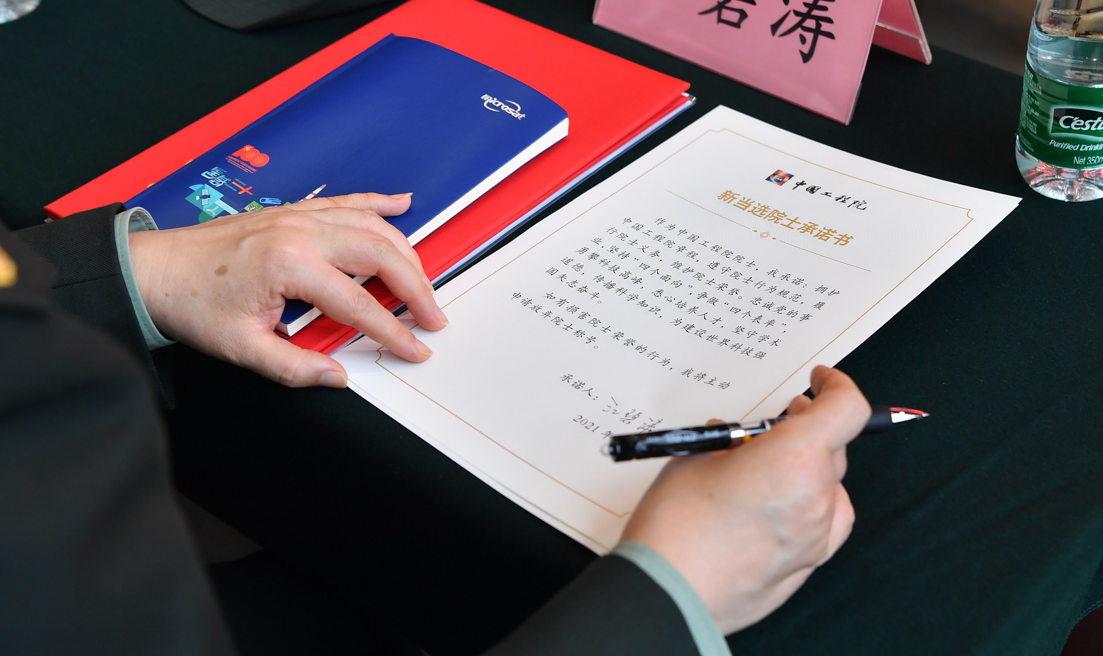 新当选院士签署承诺书。新京报记者 李木易 摄