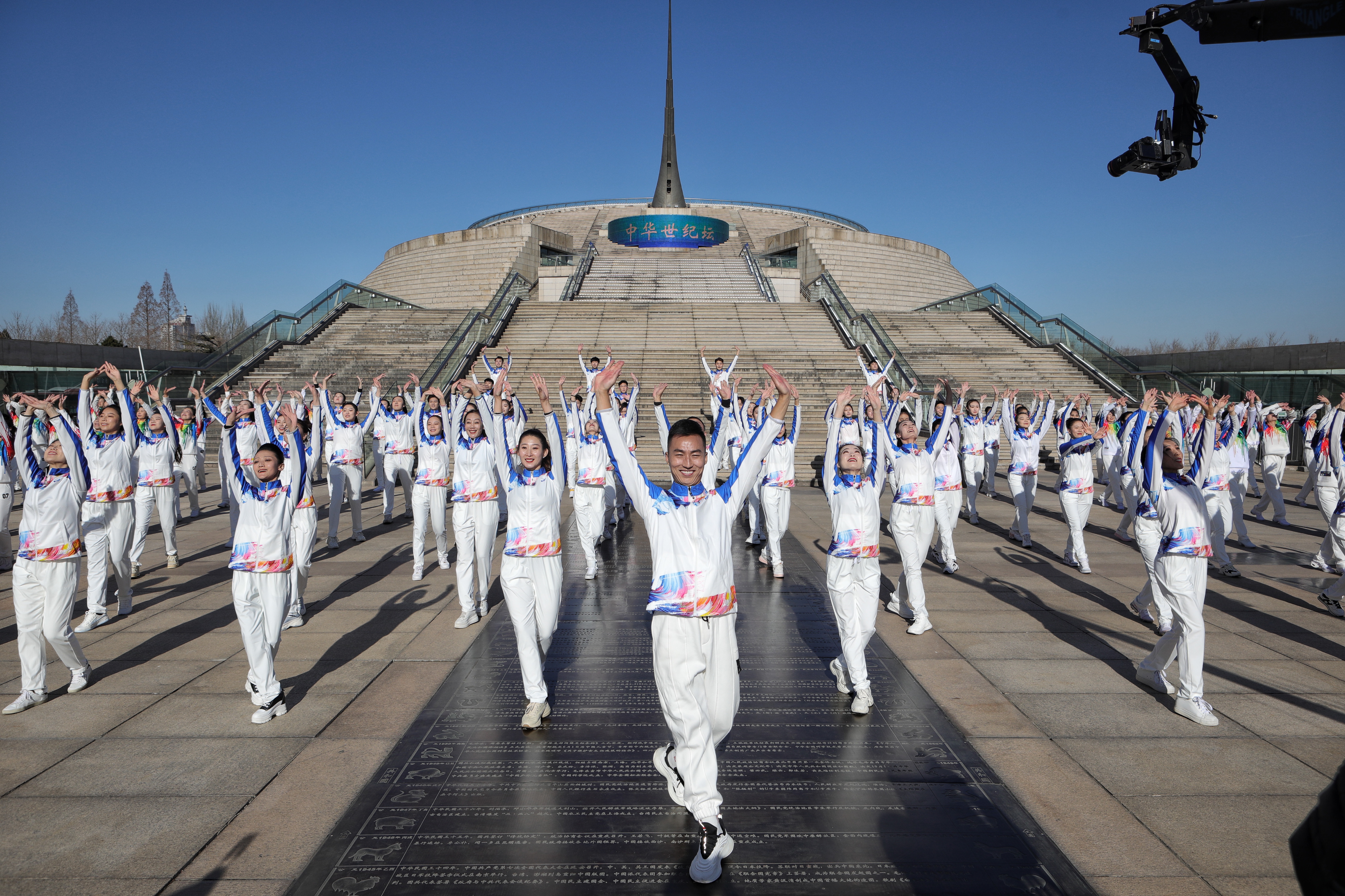 北京市文化馆组织来自北京戏曲艺术职业学院、西城区文化馆老年舞蹈队、石景山区老年舞蹈队、密云区老年舞蹈队和全市文化馆系统业务骨干共计140余人,身着五彩缤纷的冬奥运动服,共同拍摄《一起向未来》广场舞全国宣传片,不少路人驻足观看。