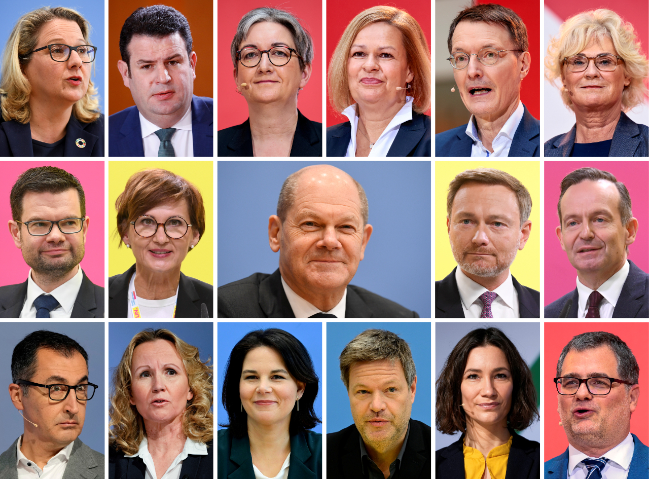 12月6日,朔尔茨公布了社民党即将出任内阁部长的人选。此前,绿党和自民党也公布了各自的内阁部长人选。根据三党联合组阁协议,社民党占据17个内阁席位中的8个——包括总理职位,绿党占据5个、自民党占据4个。