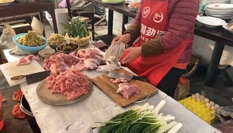 老屋旁摆起了流水席,庆祝孙卓回家。新京报我们视频截图