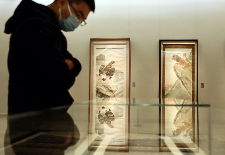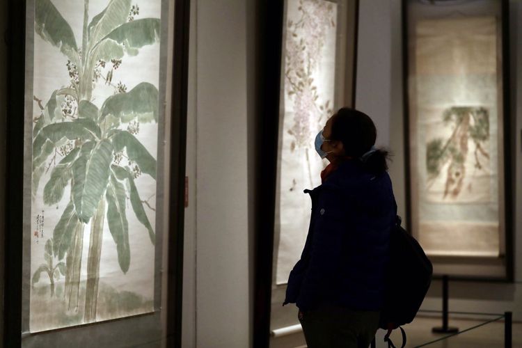 12月10日,中国美术馆,观众欣赏“只信仙都有此奇——陈树人绘画作品展”。1961年,“岭南画派”创始人之一陈树人的116件绘画作品由其夫人无偿捐赠给国家,这也是中国美术馆接收的第一批捐赠作品。