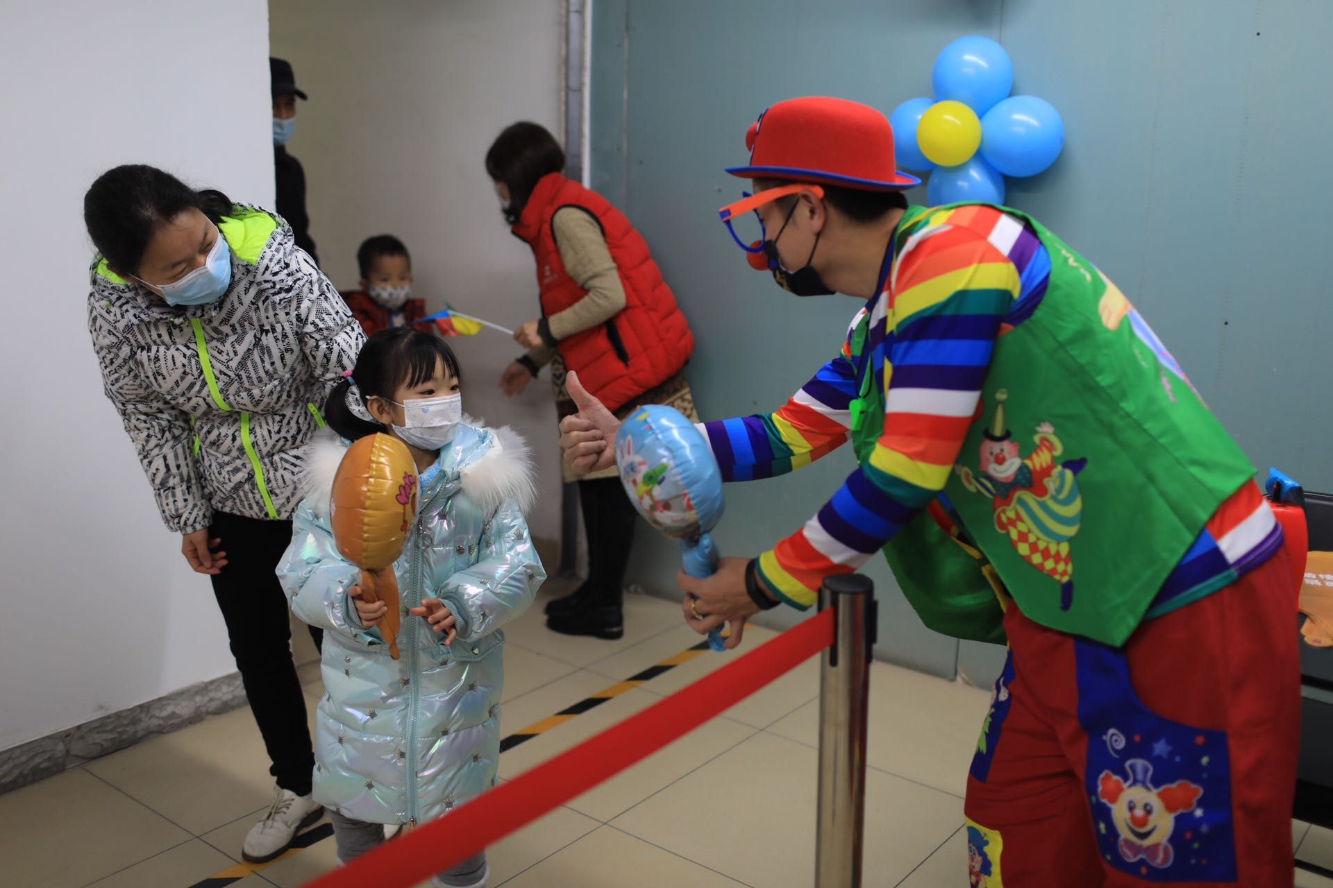 北京市海淀区四季青镇副镇长王玉介绍,为帮助小朋友们克服打针的恐惧心理,接种点采取了很多暖心举措,比如工作人员扮成小丑给孩子派发气球、表演节目,让孩子们在陌生的环境里可以放松。