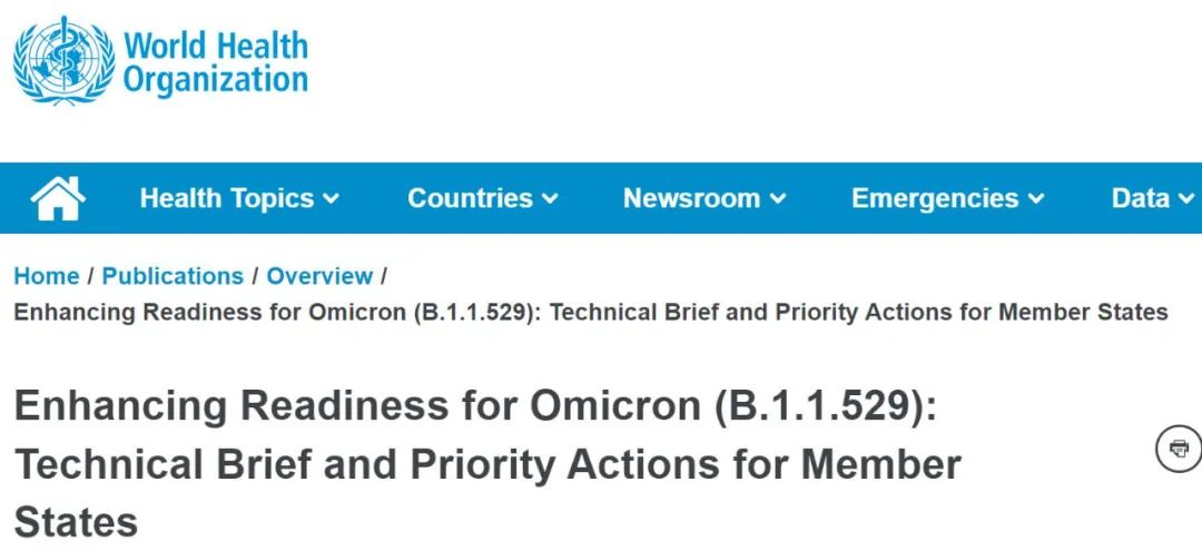 世卫组织关于奥密克戎的技术简报。图/世卫组织官网截图