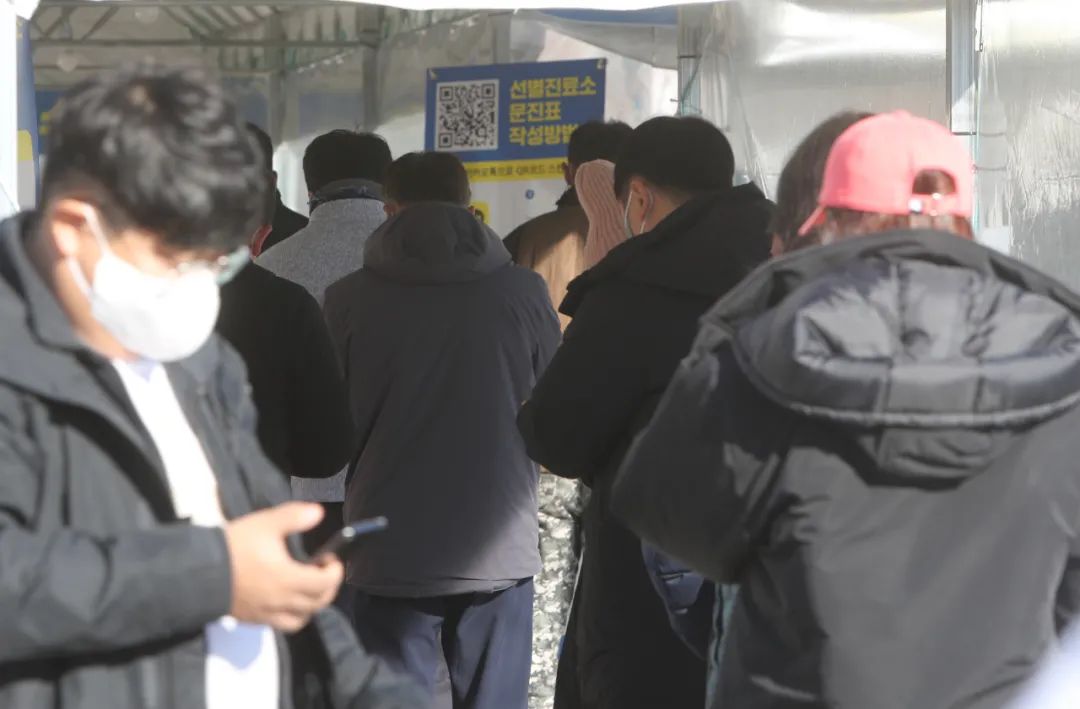 当地时间2021年12月13日,韩国,人们正在排队等待核酸检测。图/IC photo