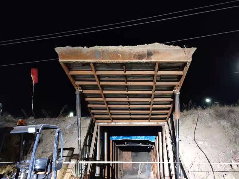 巷道的出口是一个液压门,黄土和杂草覆盖在液压门的钢板上,门关上后可与周围的土层完全融合,很难被发现。