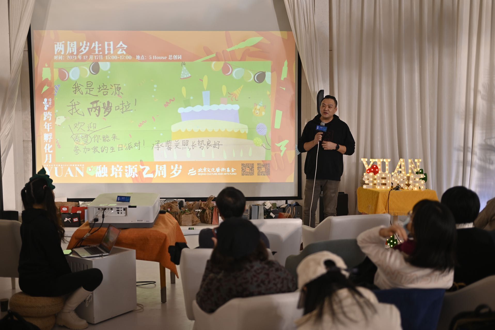 新京报讯(记者 刘臻)12月17日,“YUAN·融”培源两周岁生日会在培源孵化基地5 house思创园举行。众多业内专家、合作方代表及数十位培源编剧代表参加了此次活动,并为培源·青年戏剧人才培养及孵化平台迎来两岁生日送上祝福。