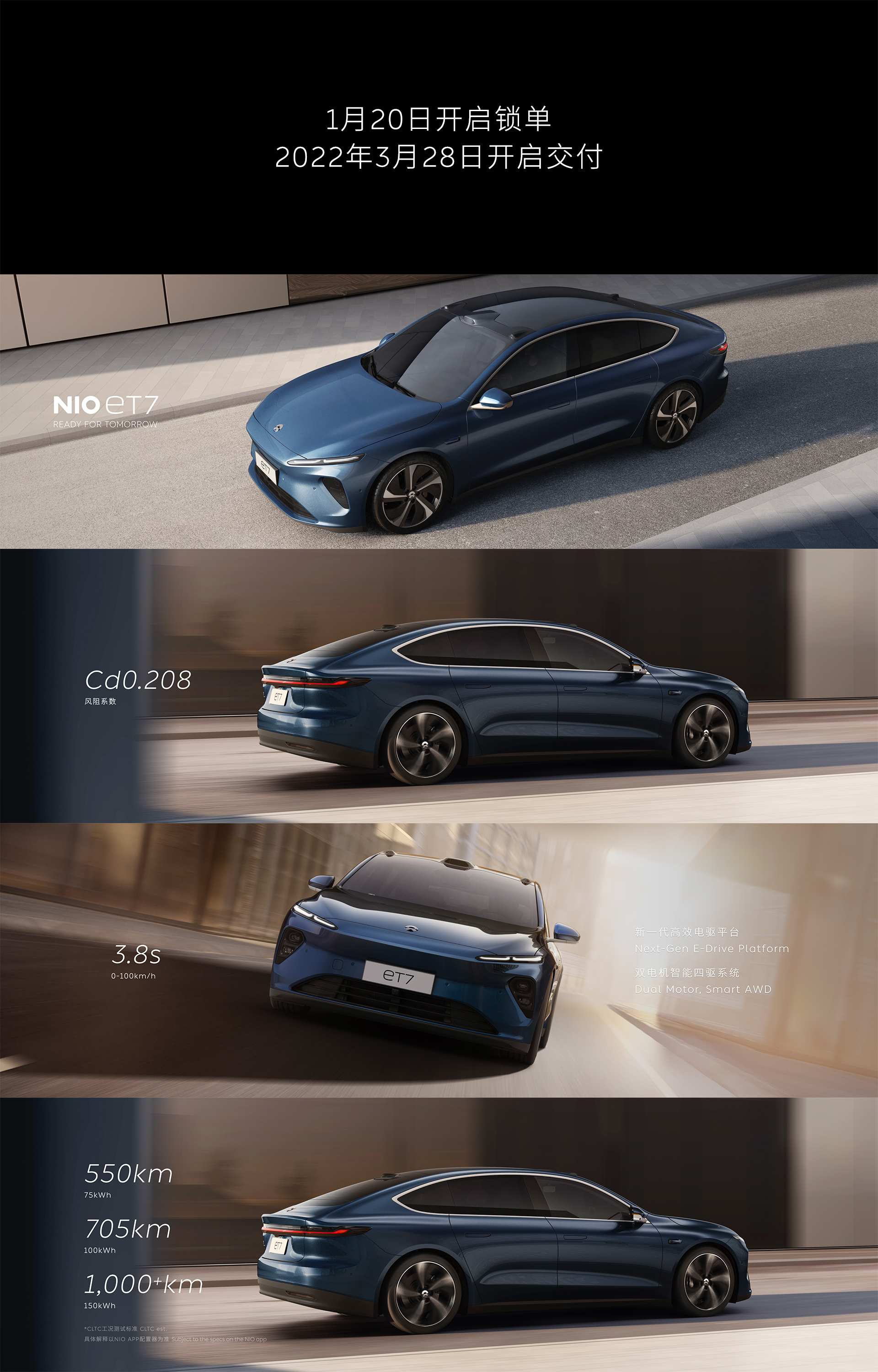 新京报贝壳财经讯(记者 张冰)12月18日,蔚来创始人、董事长、CEO李斌在NIO Day 2021大会上透露,中大型智能电动旗舰轿车ET7将于2022年1月20日开启锁单,3月28日开启交付。