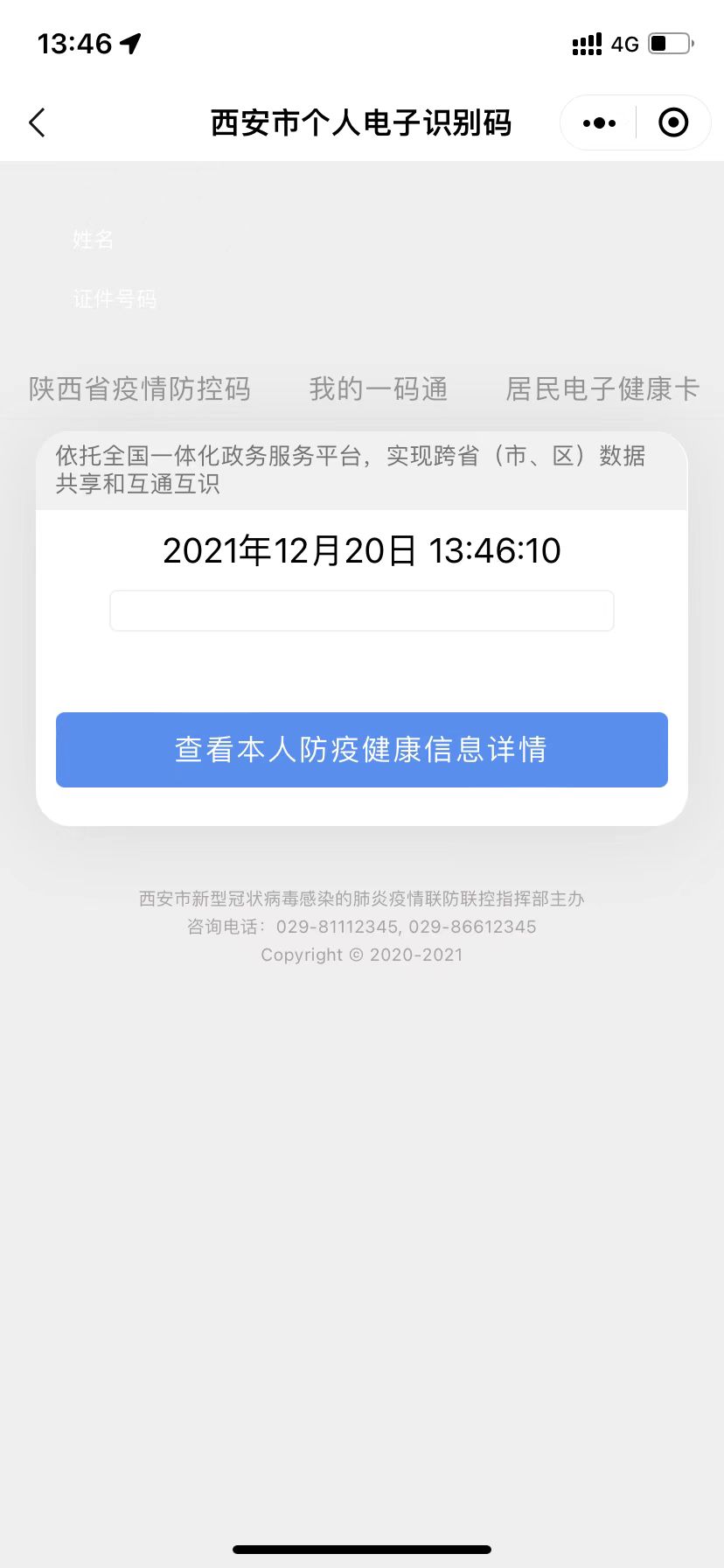 12月20日,西安一码通故障无法显示绿码。受访者供图