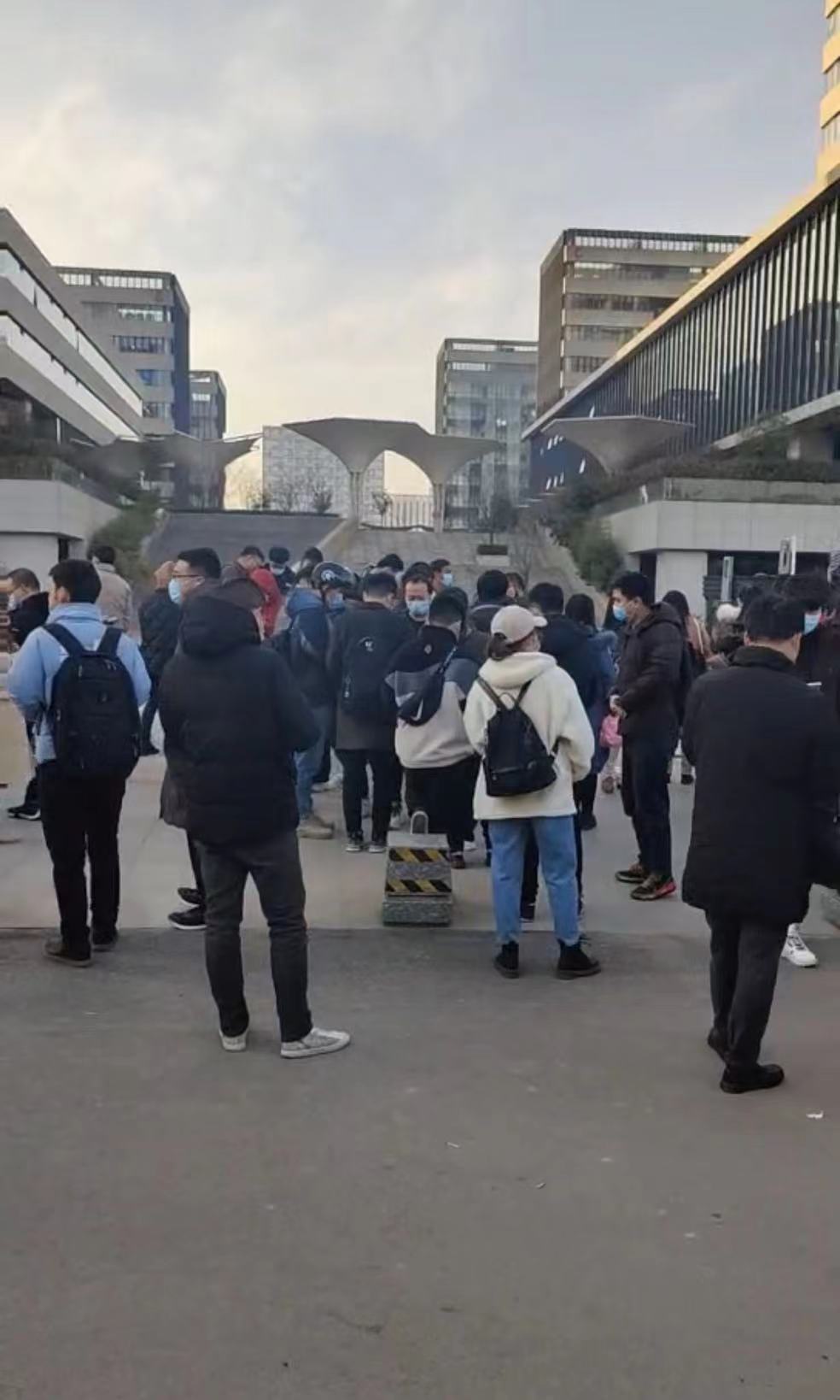 12月20日早,西安国家数字出版基地园区门口,因西安一码通故障无法显示核酸检测证明被堵在外面的上班族。目前情况已经缓解。受访者供图