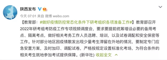 ▲12月21日,陕西发布转发教育部“做好疫情防控常态化条件下研考组织各项准备工作”安排。图/社交平台截图