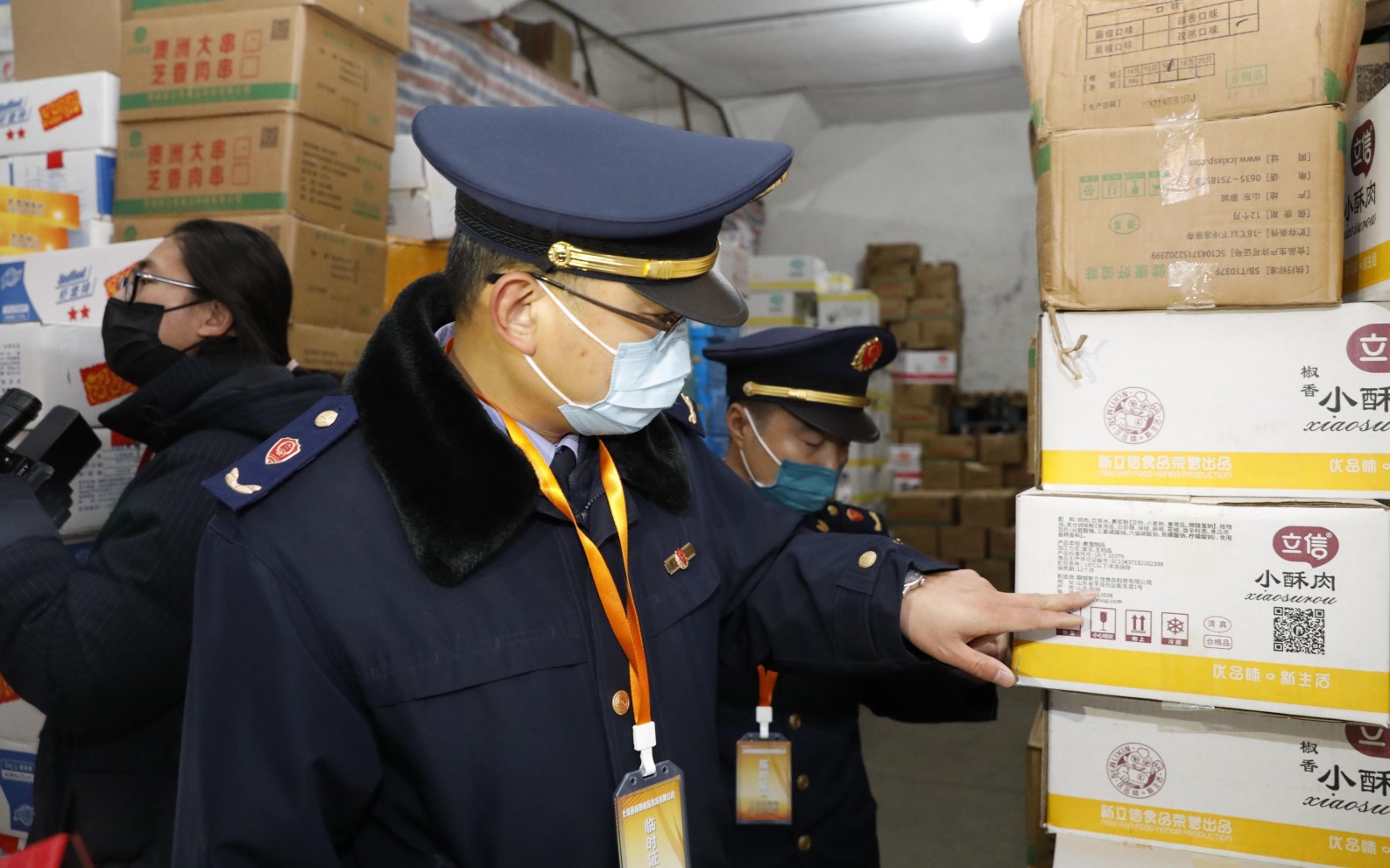 执法人员在冷库区核对信息。市场监管局供图
