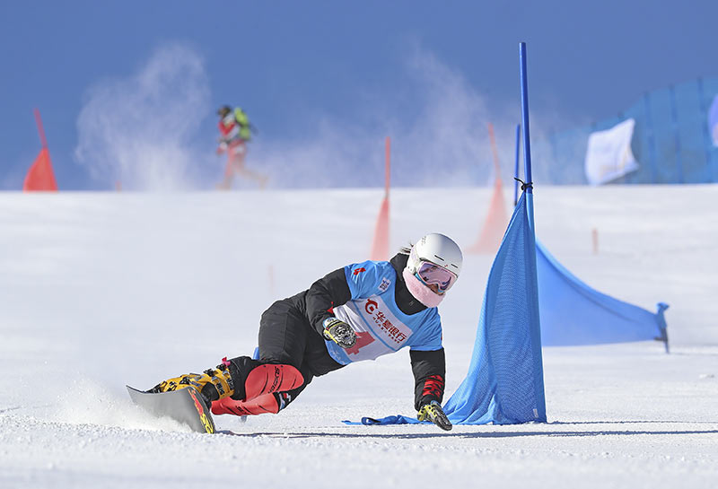 2021年2月17日,运动员在北京冬奥会张家口赛区崇礼云顶滑雪公园训练,备战2022年北京冬奥会。