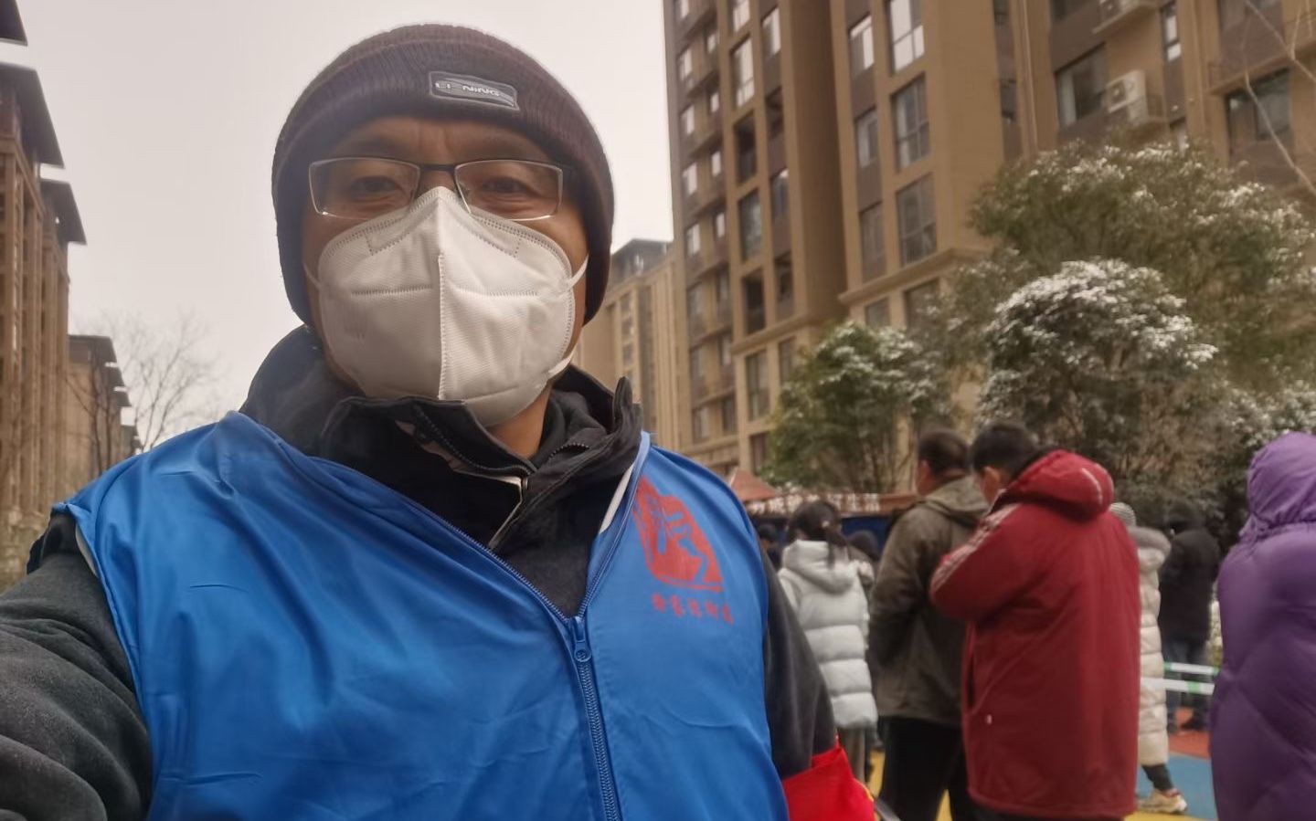 杨先生介绍,他在从事志愿工作时,可能会碰到突发情况:“偶尔会有人插队,后面的人不满意,就会发生争吵。我们志愿者要上前协调,如果他确实插队了,就让他重新排队。有的比较好沟通,志愿者协调一下就好,个别的会不依不饶,说‘你没有资格管我’,那也没有啥好办法。还有就是天气特别冷。尤其是今天,都下雪了。我穿着厚厚的马甲、毛衣、棉鞋过来,还是冻得不行。”