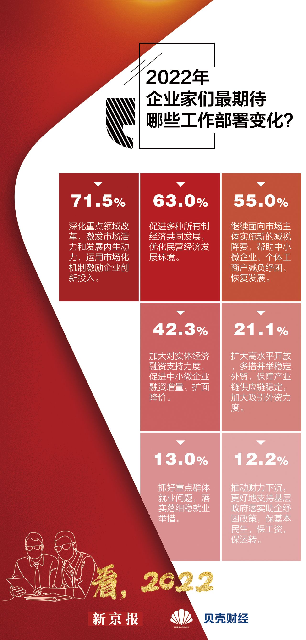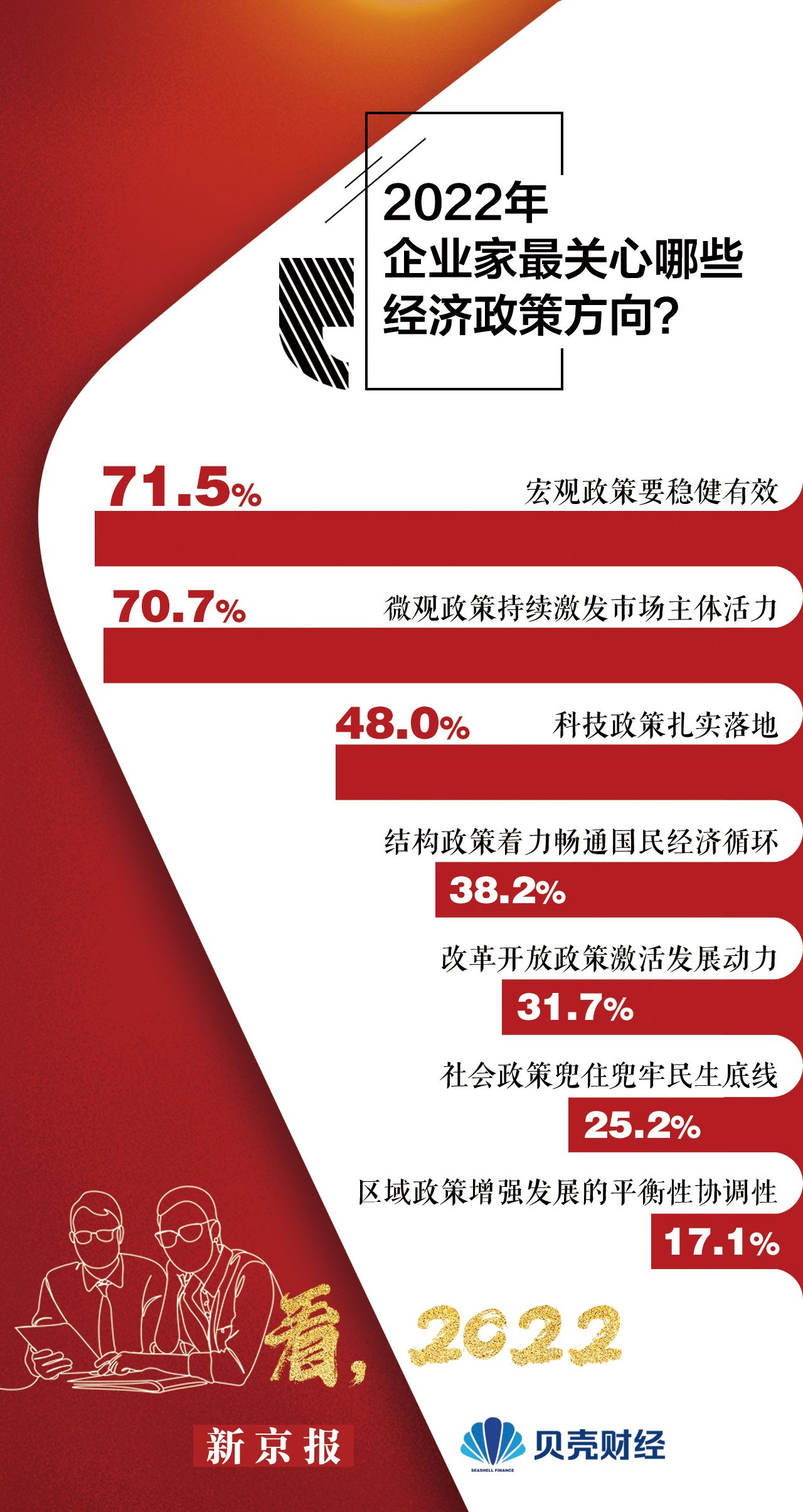 2022年经济工作要稳字当头、稳中求进,要求各地区各部门担负起稳定宏观经济的责任,积极推出有利于经济稳定的政策,企业家们最关心哪些经济政策方向?