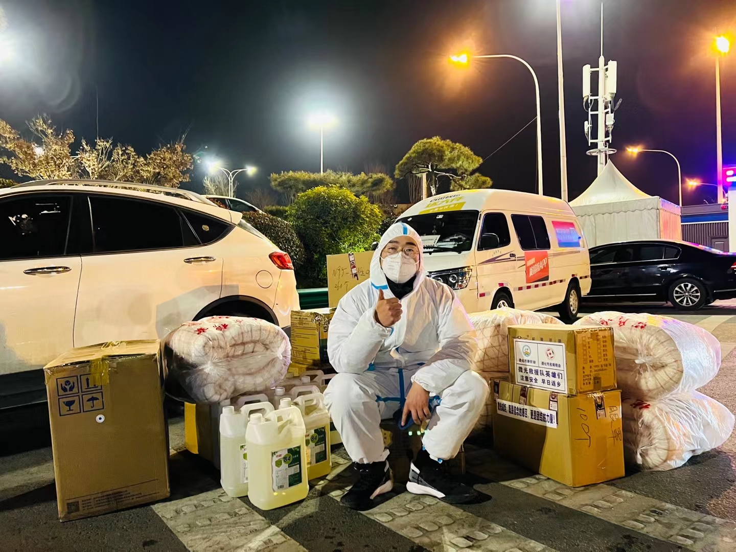 物资搬运完,他又匆忙掉头开车返回武汉,他说,要从武汉再拉一批物资来西安支援。短短的15分钟,虽然我连他长啥样都不知道,但还是能感觉到力量——中国人的力量,爱的力量。