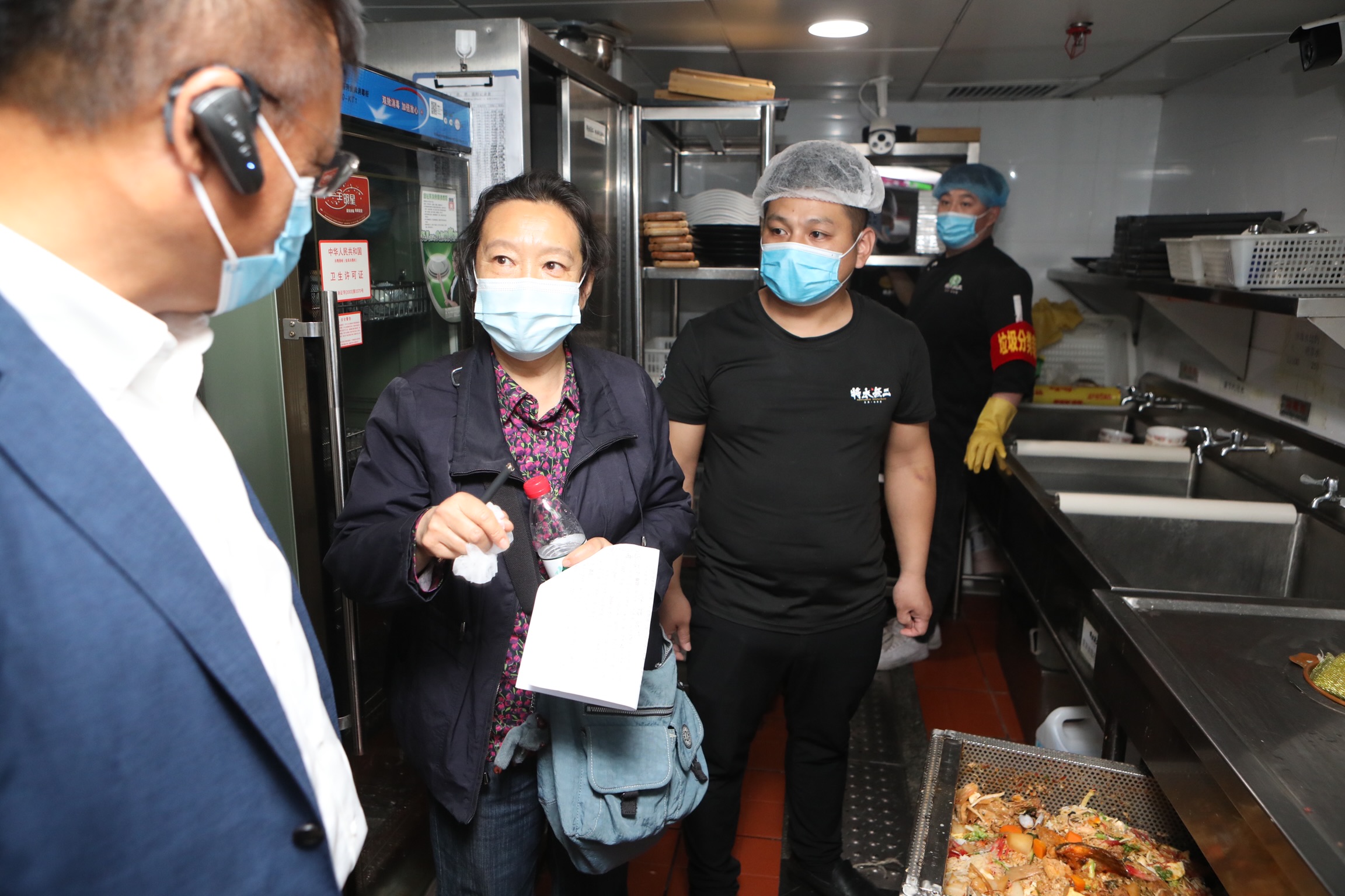 2021年5月13日,汉光百货内的将太无二后厨,北京市人大常委会“两条例”执法检查组第二组组员在进行检查。资料图片/新京报记者 王嘉宁 摄