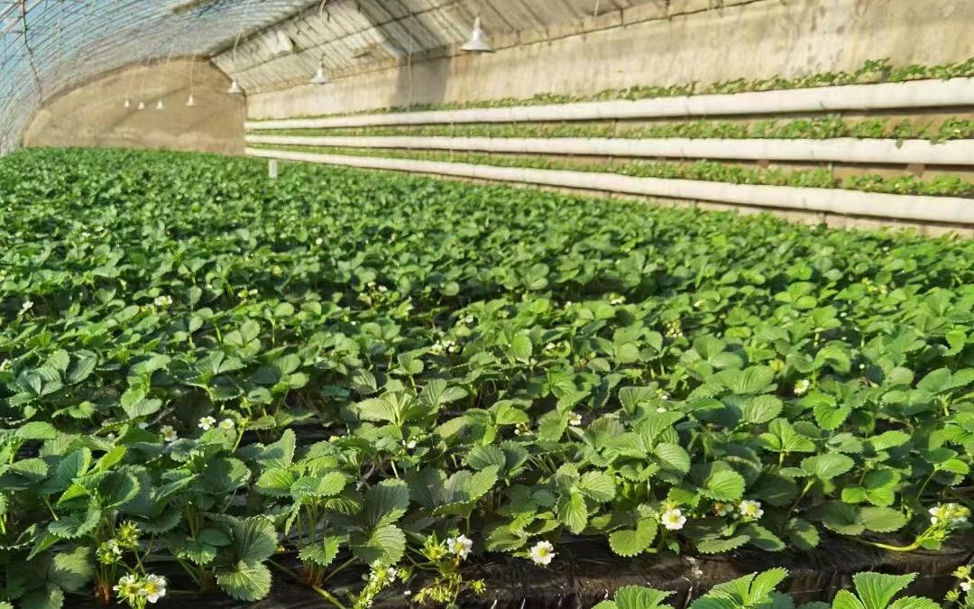十二月初,京郊大棚里的草莓苗只有零星挂果。受访者供图