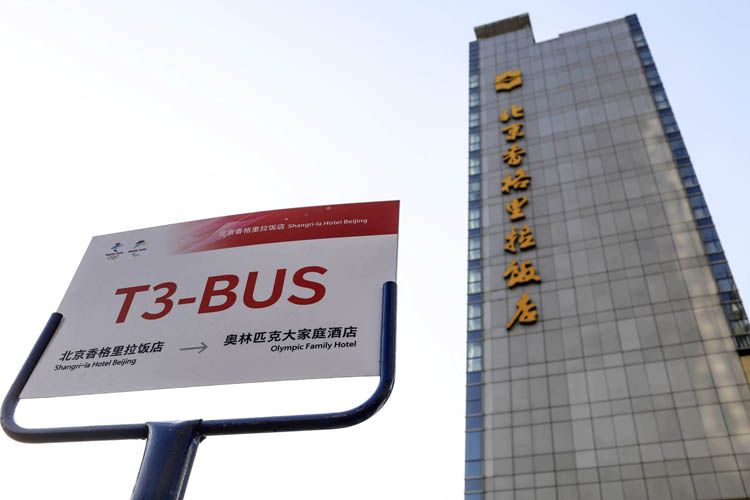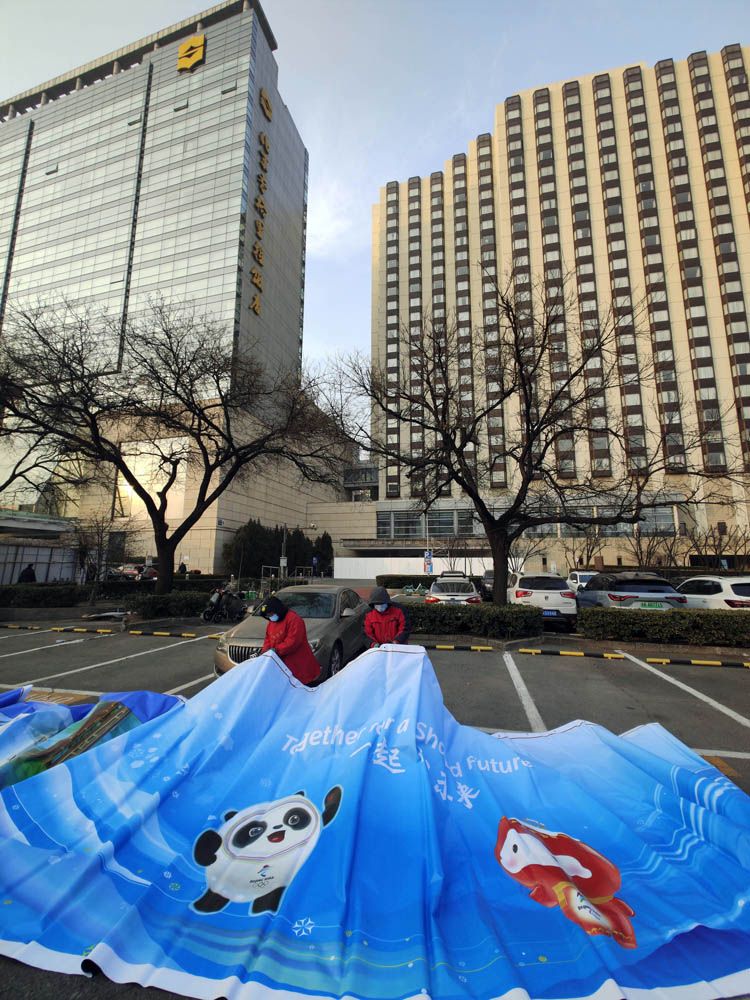 1月14日,北京香格里拉饭店停车场,标识牌就位。