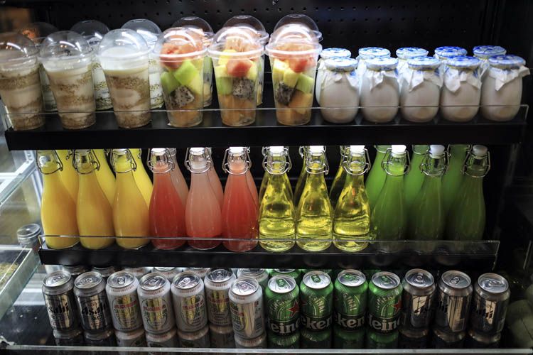 1月14日,北京香格里拉饭店餐厅内摆放着丰富饮品。为做好闭环服务保障工作,北京香格里拉饭店从住宿、餐饮、交通、环境等细节着手,力争为冬奥赛事提供优质、贴心的服务保障。