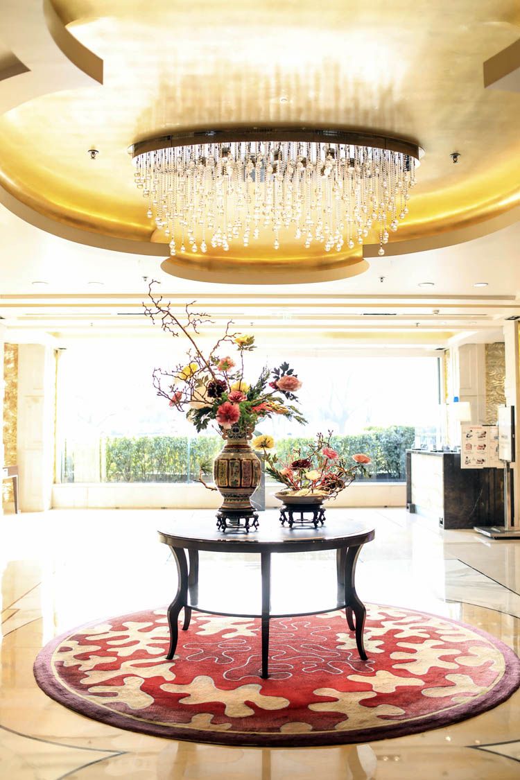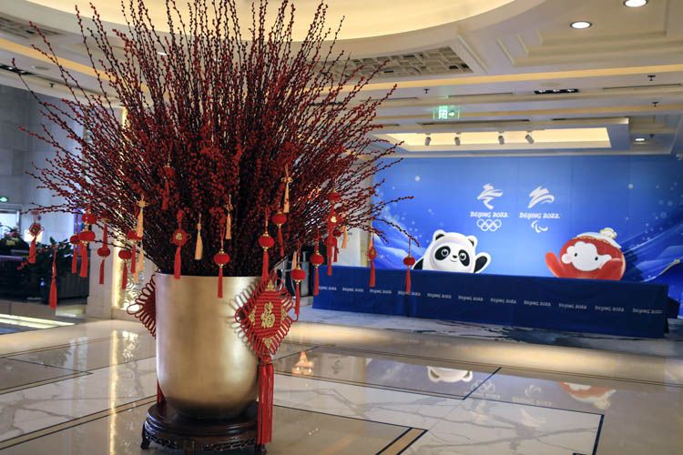 1月14日,北京香格里拉饭店,大堂摆放专为冬奥准备的插花。