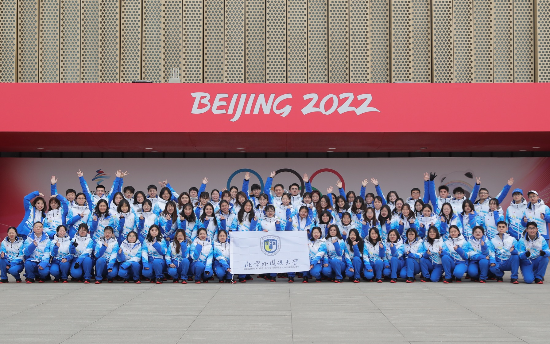 来自北外的志愿者们集体合影留念。五棵松体育中心场馆运行团队供图 樊迪 摄