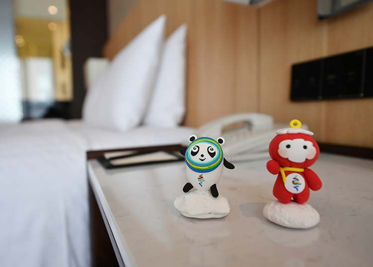 金陵饭店,工作人员制作了“冰墩墩”“雪容融”,作为送给宾客的温馨小礼物。